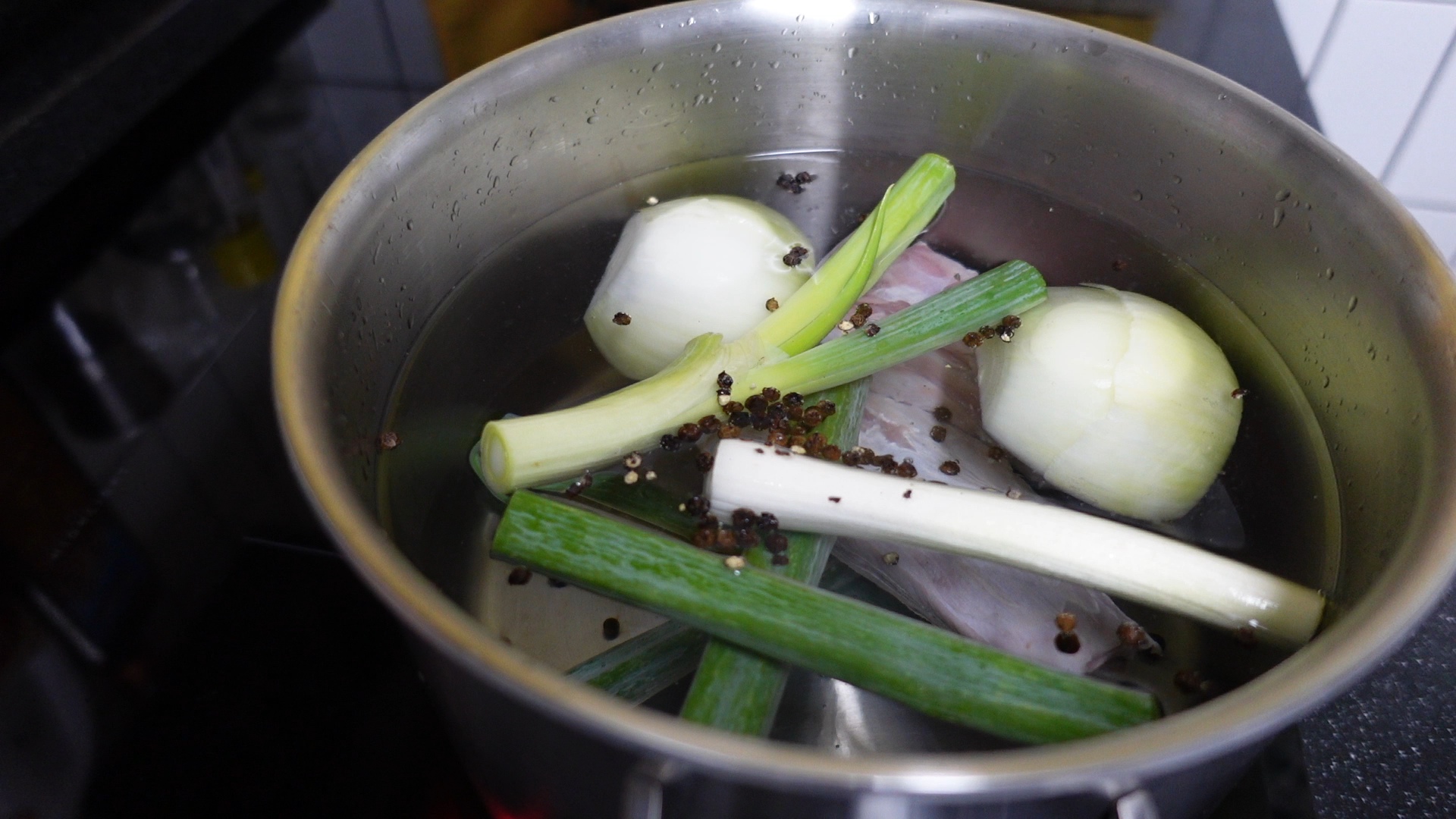 양파, 대파, 다진 마늘, 통후추 넣고